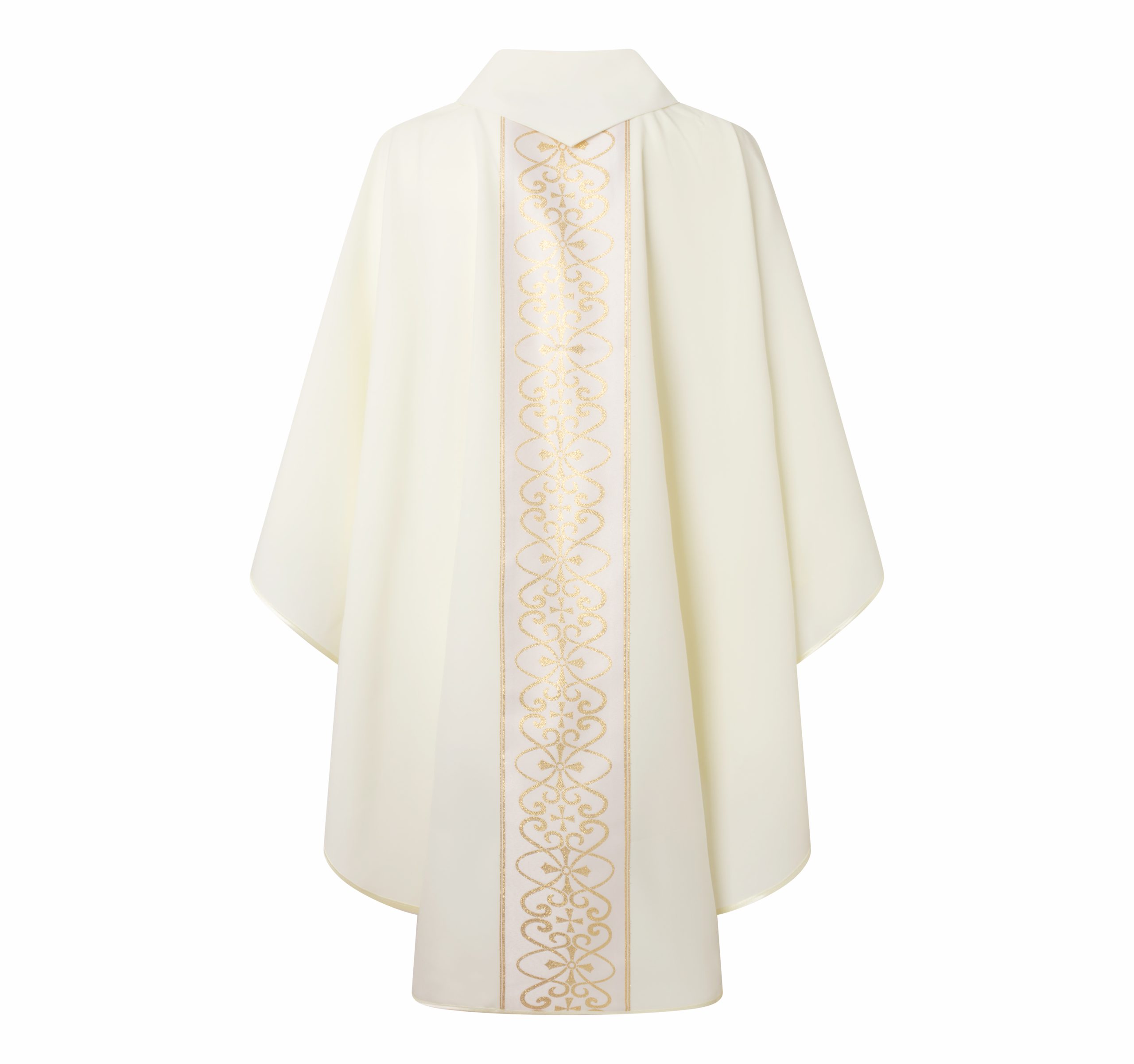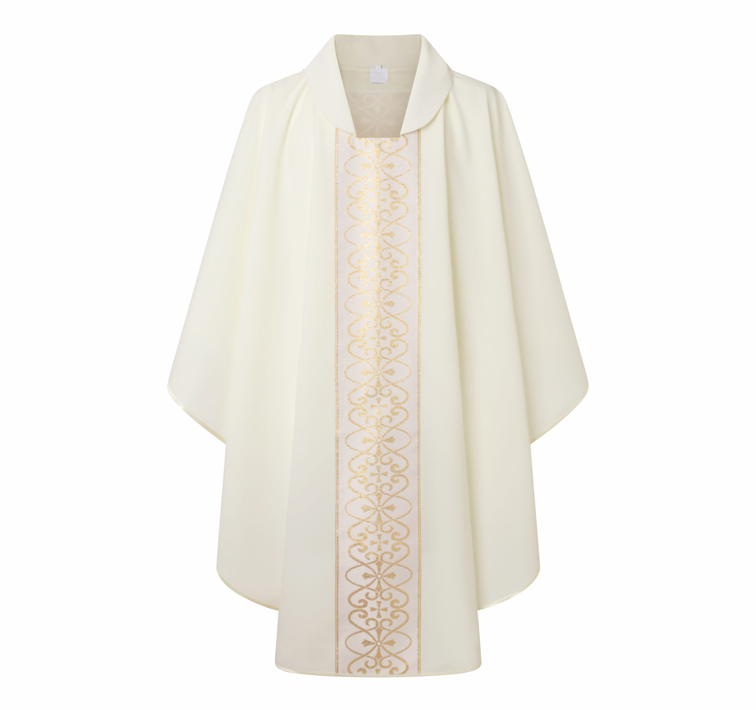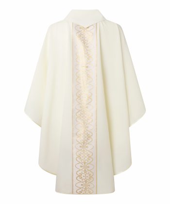 Casulla blanca fabricada con un poliéster muy fresco. Ideal para zonas con temperaturas altas
