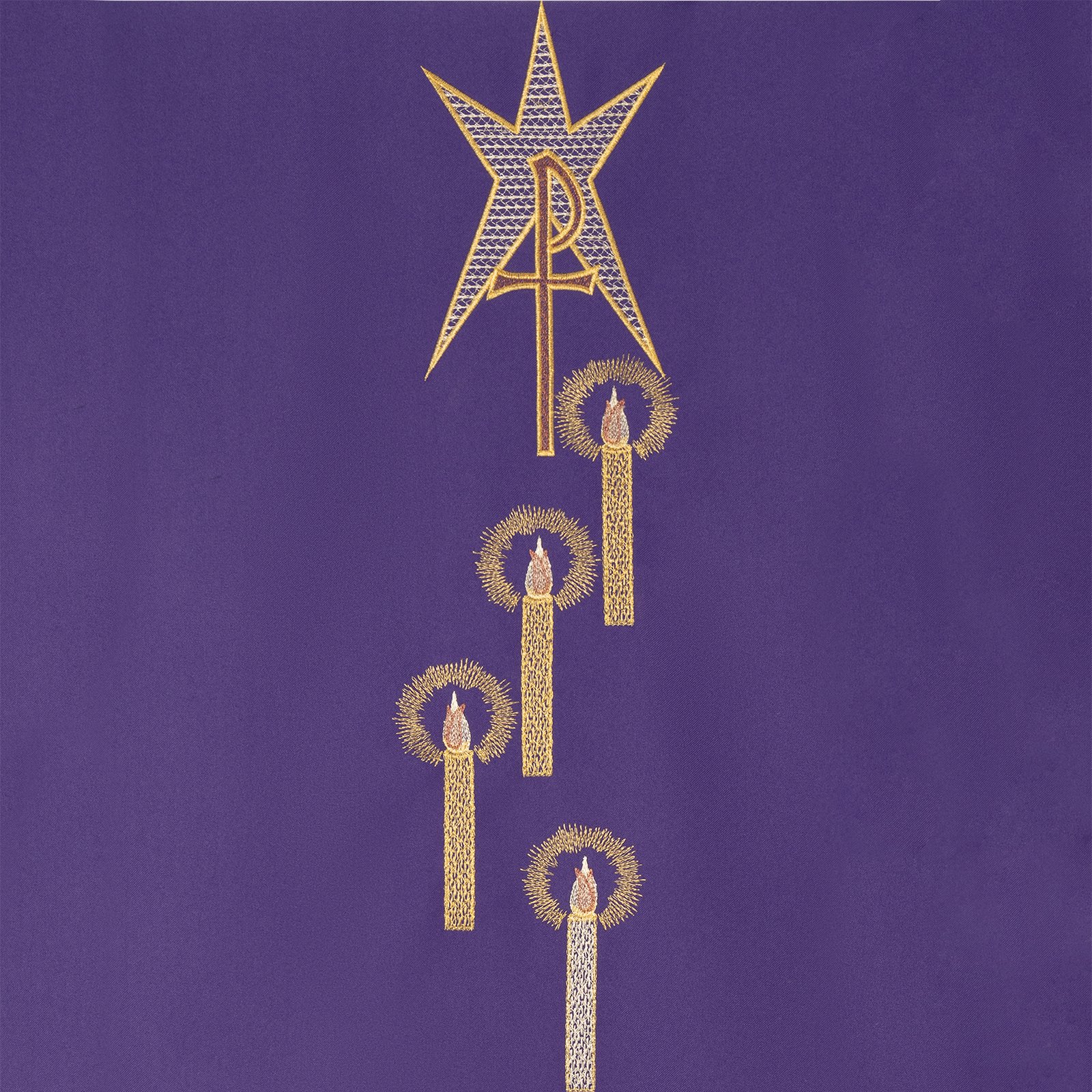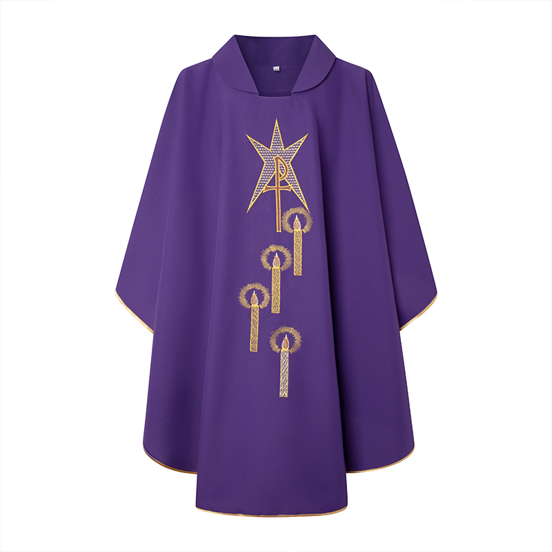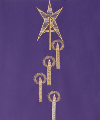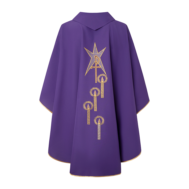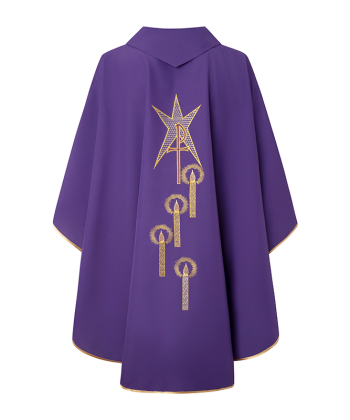 Casulla morada con estampa de adviento.