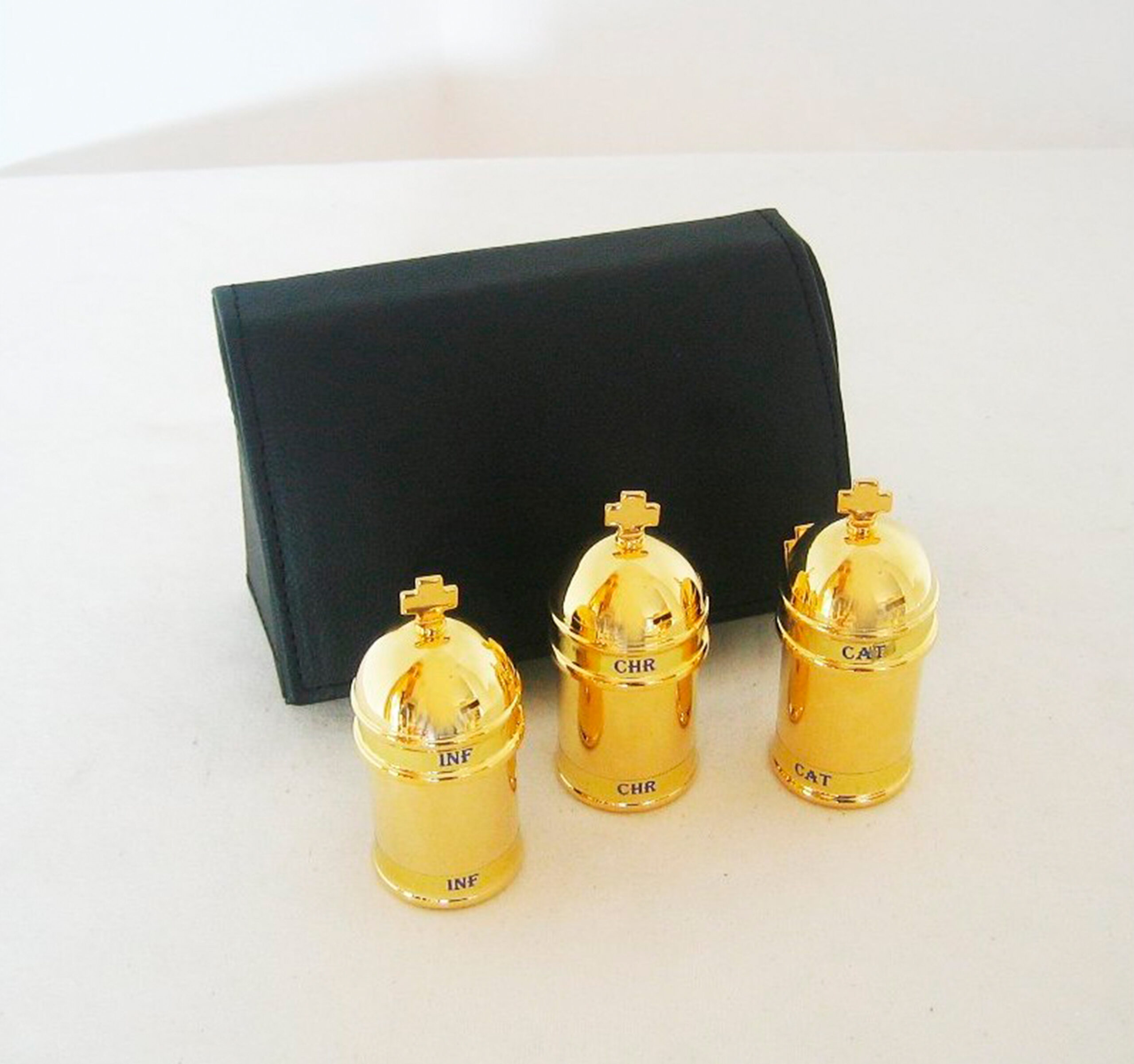 Una opción práctica y completa para quienes buscan tener los tres óleos sagrados reunidos en un único conjunto funcional y confiable para su labor pastoral diaria.