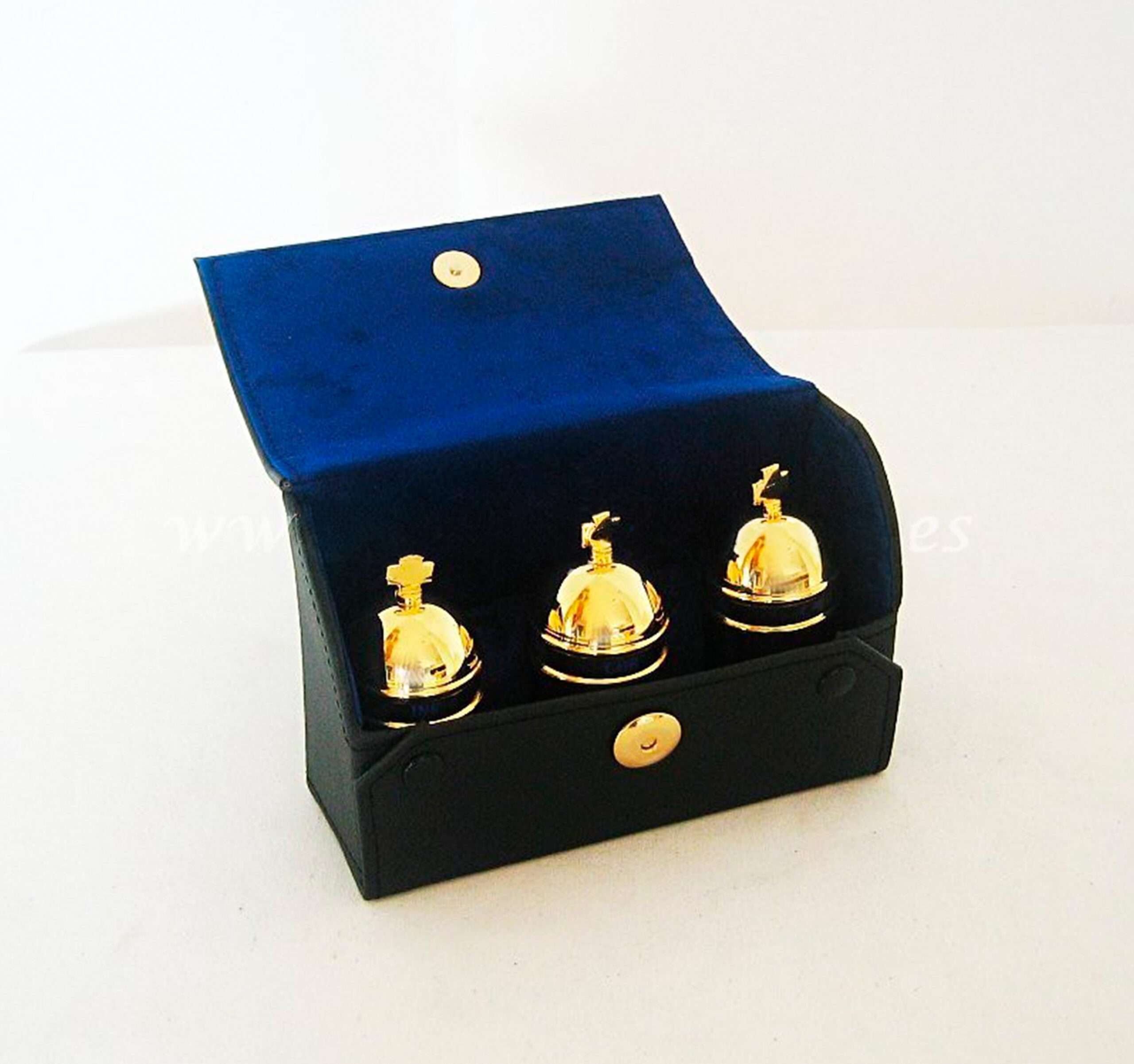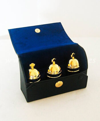 La Crismera Triple en Estuche de Cleronet es un conjunto de tres crismeras presentadas en su propio estuche, pensado para sacerdotes y ministros que necesitan transportar los tres óleos litúrgicos de manera segura, ordenada y siempre a mano.