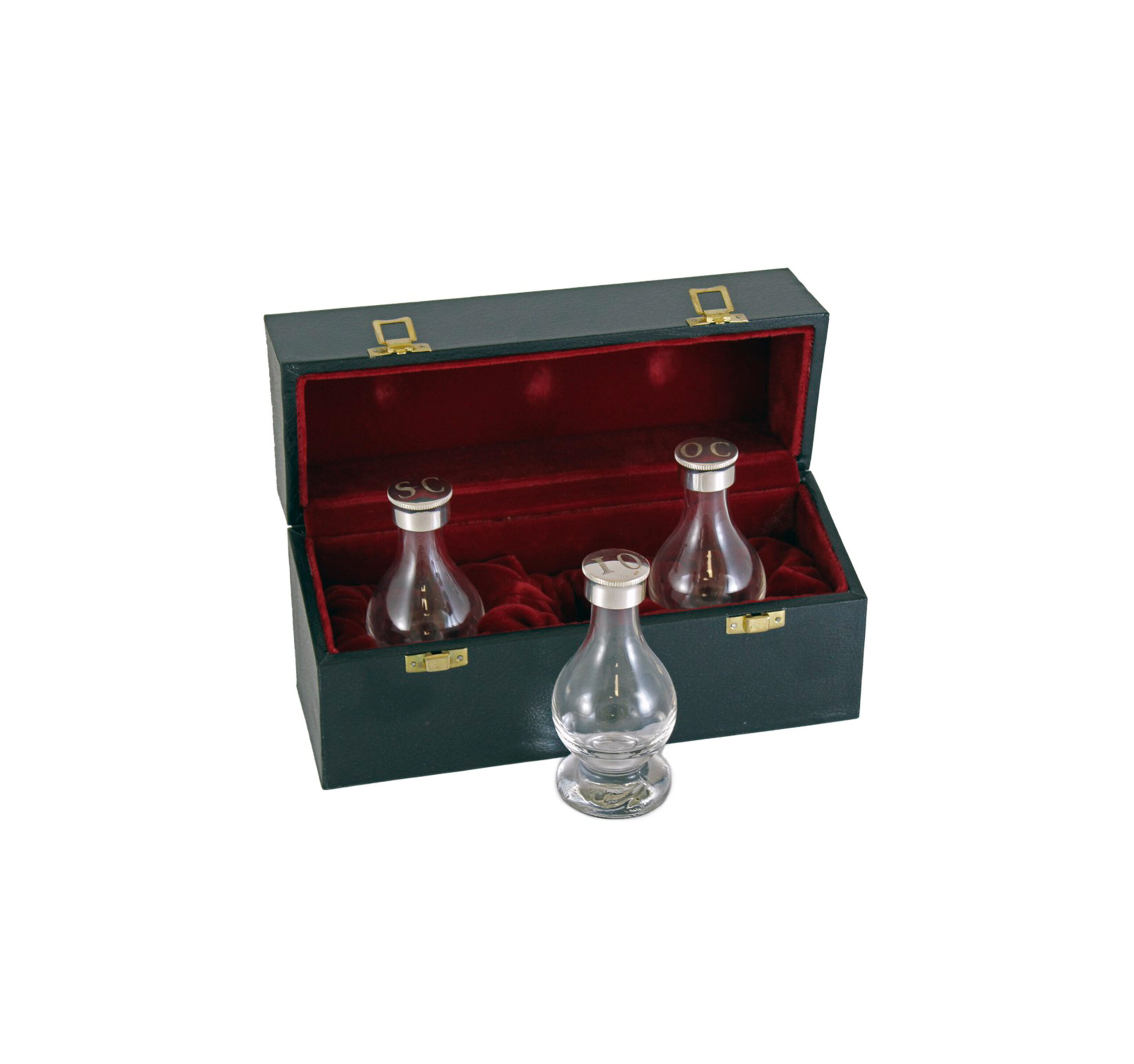 La Crismera Triple Grabada en Estuche de Cleronet es un conjunto de tres crismeras de cristal con tapones de latón plateado, que combina funcionalidad litúrgica con un acabado artesanal de gran valor estético. Los grabados que adornan cada pieza le otorgan una identidad propia y refinada, diferenciando este conjunto de opciones más convencionales y aportando una presencia solemne y cuidada sobre el altar o la mesa litúrgica.