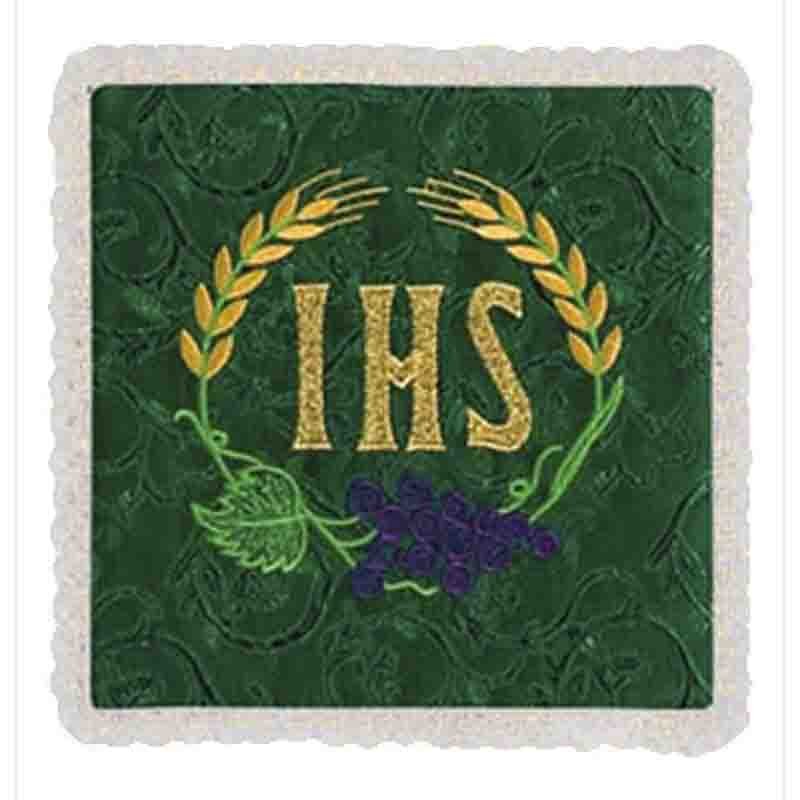 Palia verde bordada con IHS y trigos en dorado