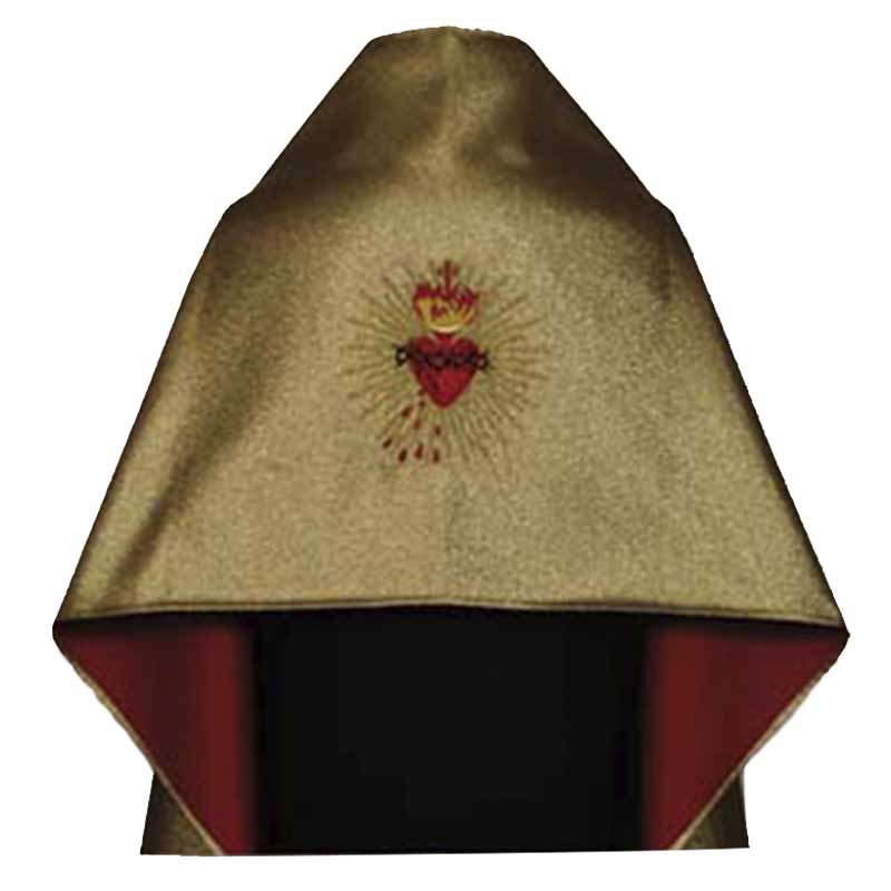 Paño humeral dorado con precioso bordado de símbolos católicos como es el fuego y el corazón. Muy buen precio