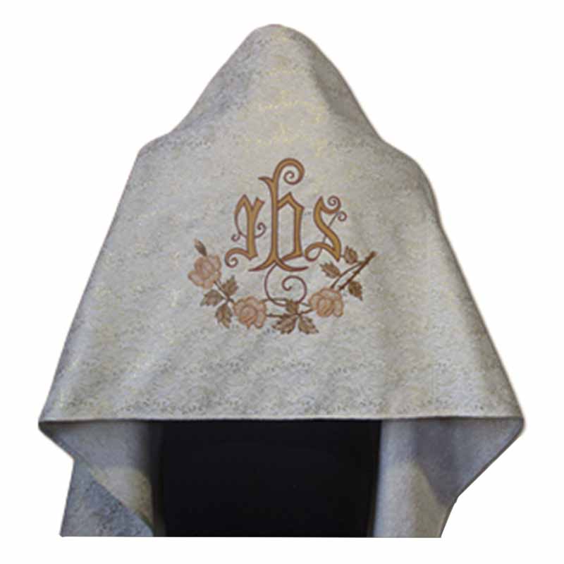 Velo humeral dorado con bordado en varias tonalidades de JHS rosas y rama.