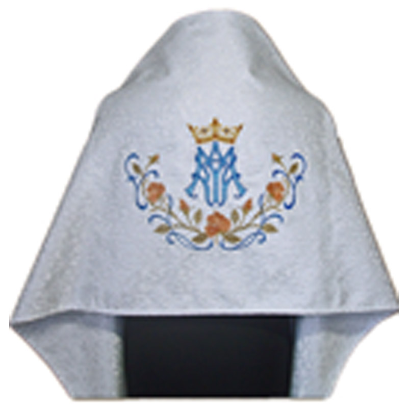 Paño de hombros sacerdotal blanco plata con espectacular bordado mariano a un precio buenísimo