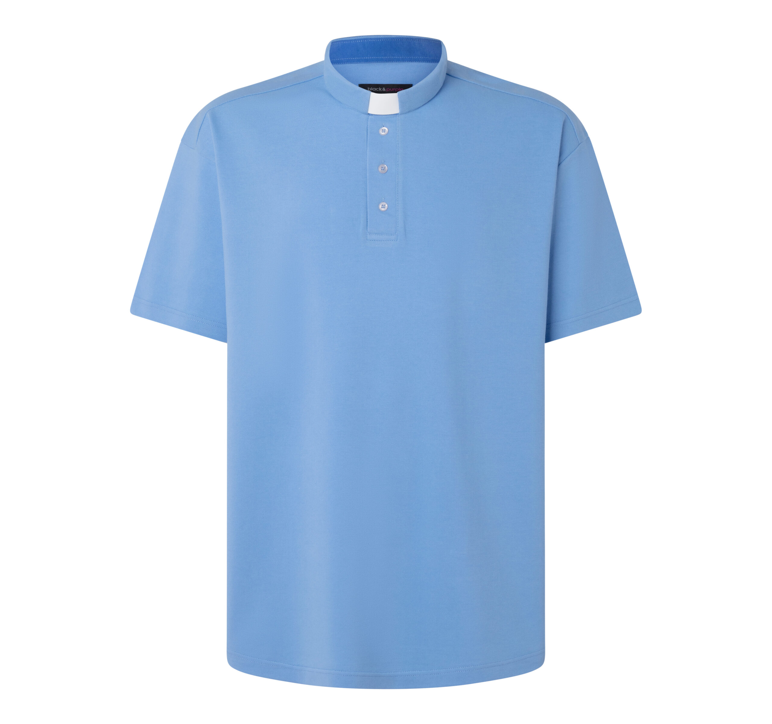 Polo sacerdote cleriman de manga corta azul claro o cielo. Tejido 100% algodón. Gran durabilidad.