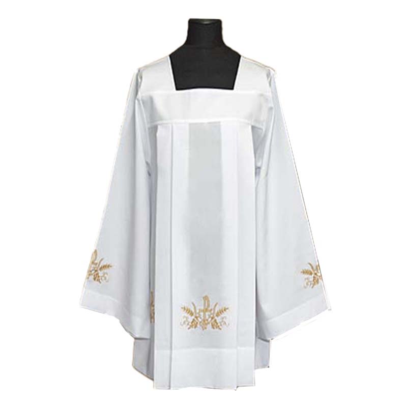Roquete sacerdote bordado con cruz y trigo en dorado.